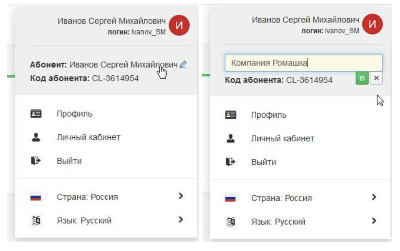 Название абонента можно изменить самостоятельно. Для этого нажмите на название абонента и введите новое. Сохраните внесенные изменения. Название может не совпадать с юридическим названием компании. Главное, чтобы клиент и сотрудники могли легко идентифицировать абонента.