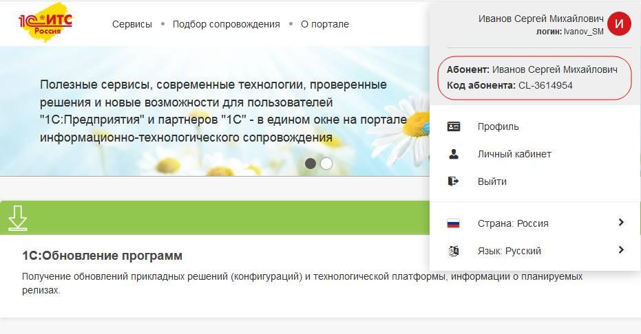 У каждого пользователя личного кабинета есть собственный логин и пароль. После регистрации аккаунта на портале 1С:ИТС для него автоматически создается «связанный» абонент. Название аккаунта формируется из Ф. И. О., указанных при регистрации. Если Ф. И. О. не были внесены, используется логин аккаунта пользователя.