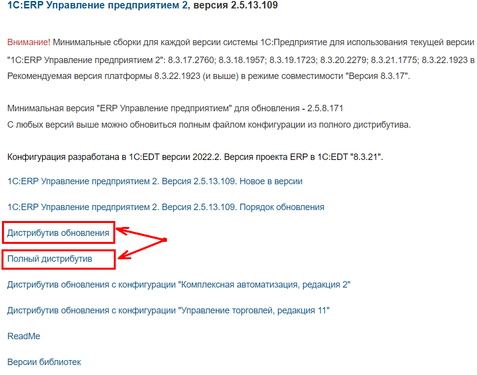 Обратите внимание: для некоторых конфигураций может не быть полного дистрибутива. В этом случае запрос можно направить на линию консультаций фирмы «1С» или со-разработчику (для продуктов «1С-Совместно»).