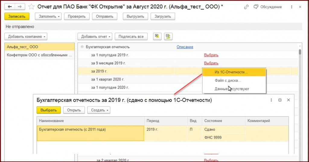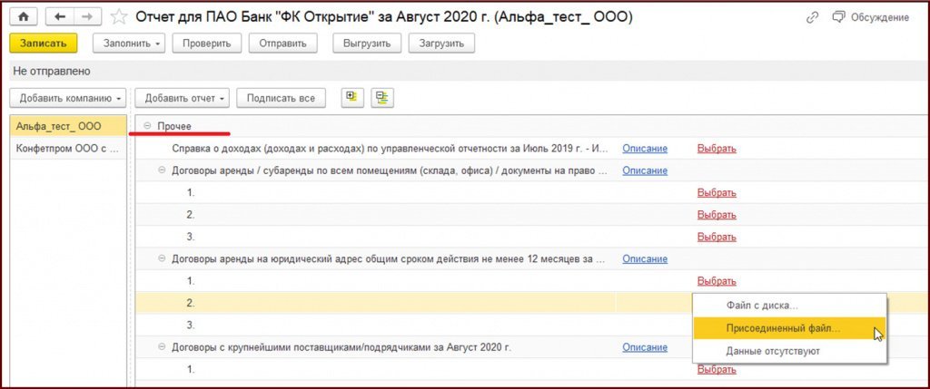 Годовую отчетность и декларации необходимо передать банкам с отметками ФНС о приеме. Если используется сторонний сервис для сдачи отчетности, файлы нужно выгрузить и приложить к пакету документов вручную. При подготовке отчетности через сервис 1С-Отчетность данные передаются автоматически.