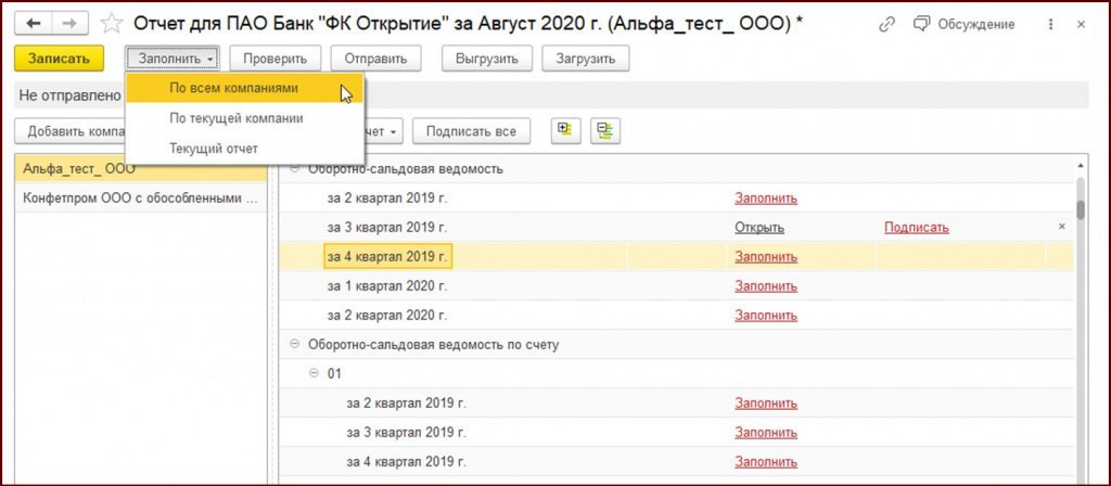 Чтобы заполнить конкретный отчет, нажмите на кнопку Заполнить — По данным учета.