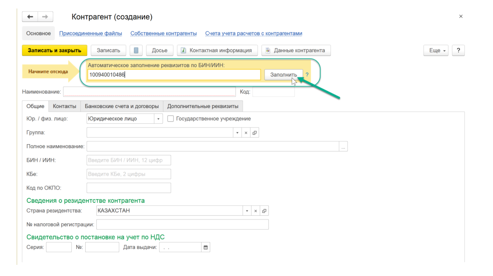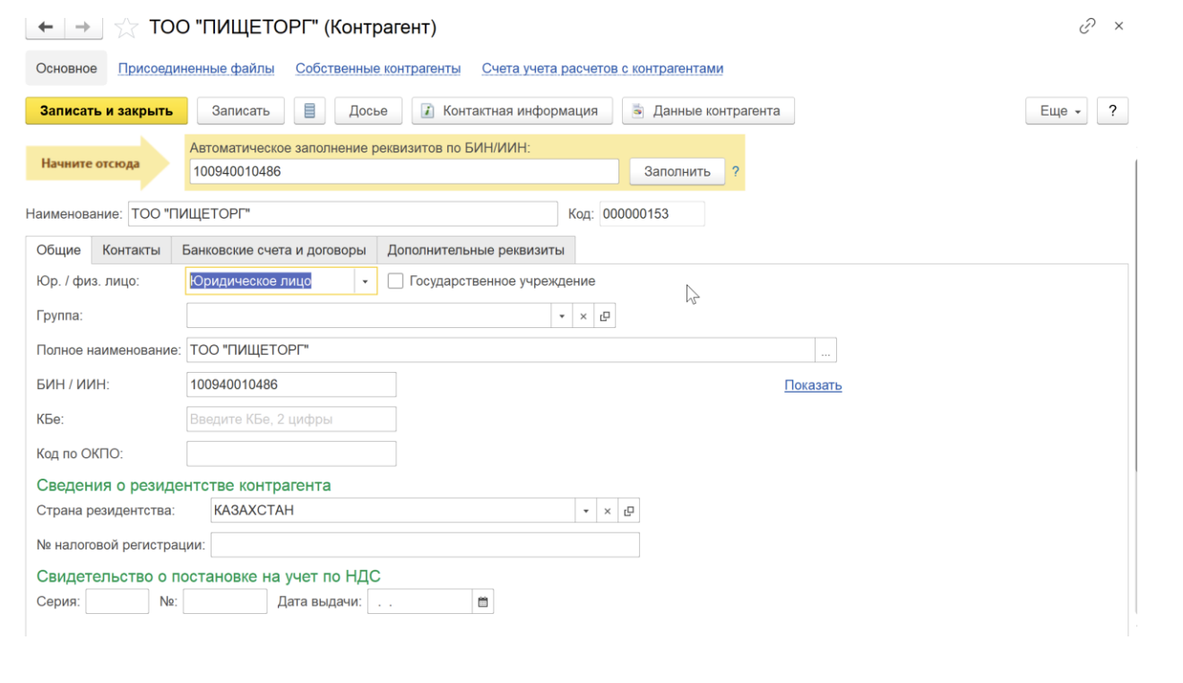 Еще одна полезная функция, для чего нужен 1С Контрагент, — автоматическое заполнение данных нового контрагента. Чтобы это сделать:
