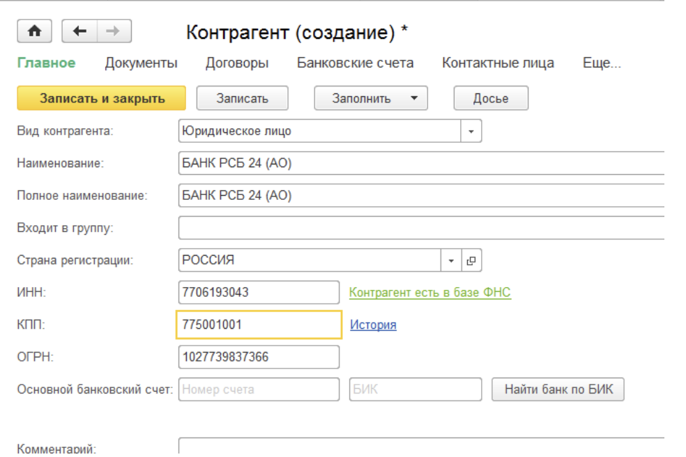 1. Введите ИНН или наименование в карточке контрагента.