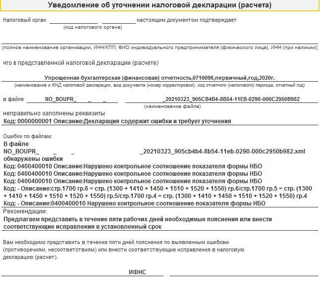Консультация специалиста 1СНКО сталкиваются не только со сдачей годовой бухгалтерской отчетности, но и с последствиями ее проверки. После отправки отчетности в налоговую через несколько дней можно получить «Уведомление об уточнении налоговой декларации (расчета)» с указанием ошибки 400400010 — «Нарушение контрольного соотношения показателя формы НБО».