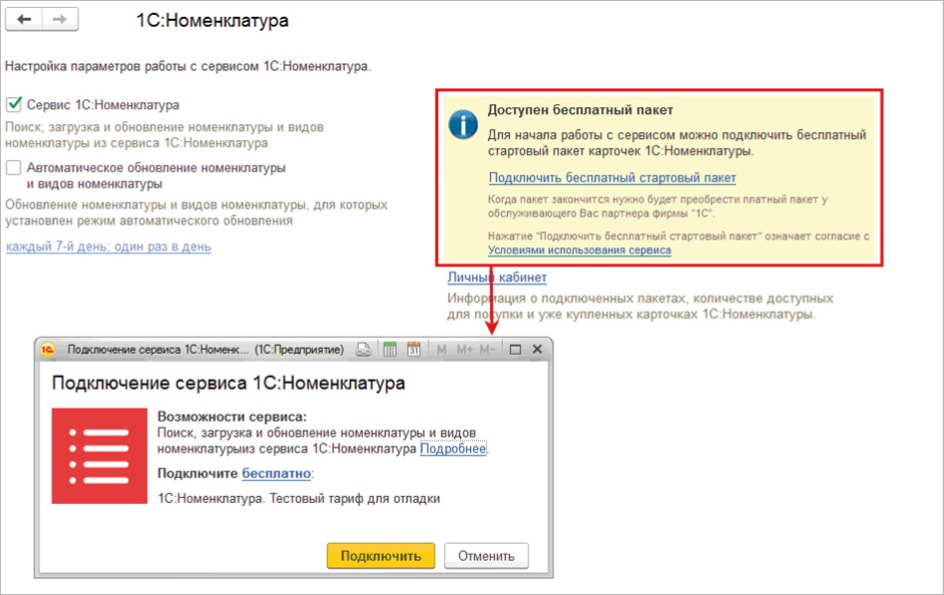 В рамках пробного периода предоставляется бесплатный стартовый пакет на 10 000 карточек сроком на 1 год. Для активации необходимо нажать ссылку Подключить бесплатный стартовый пакет.