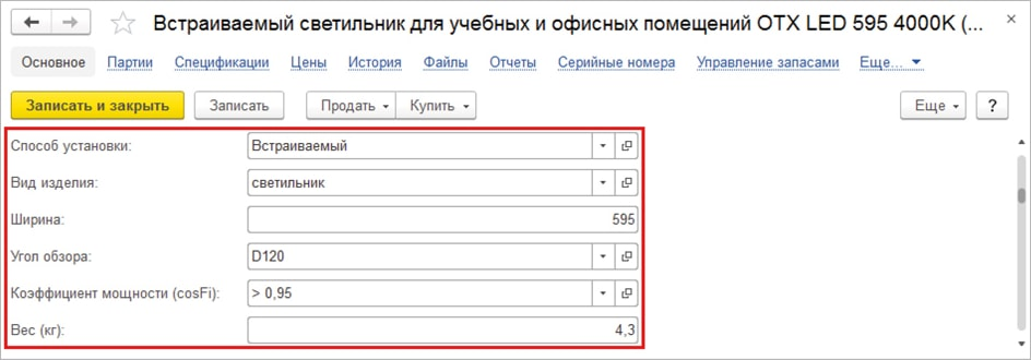 Использование сервиса 1С:Номенклатура упрощает создание новых позиций номенклатуры. При заполнении карточки система автоматически проверяет наличие подходящих вариантов в сервисе по уже введенным реквизитам.
