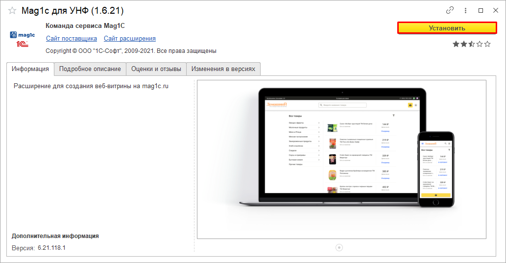 Консультация специалиста 1СВ сервисе mag1c удобно быстро создать сайт магазина, где покупатели смогут просматривать ассортимент и оформлять заказы онлайн. Веб-витрина полностью интегрируется с 1С:УНФ: из программы выгружаются товары с характеристиками, ценами и остатками, а все заказы автоматически попадают обратно в учетную систему.