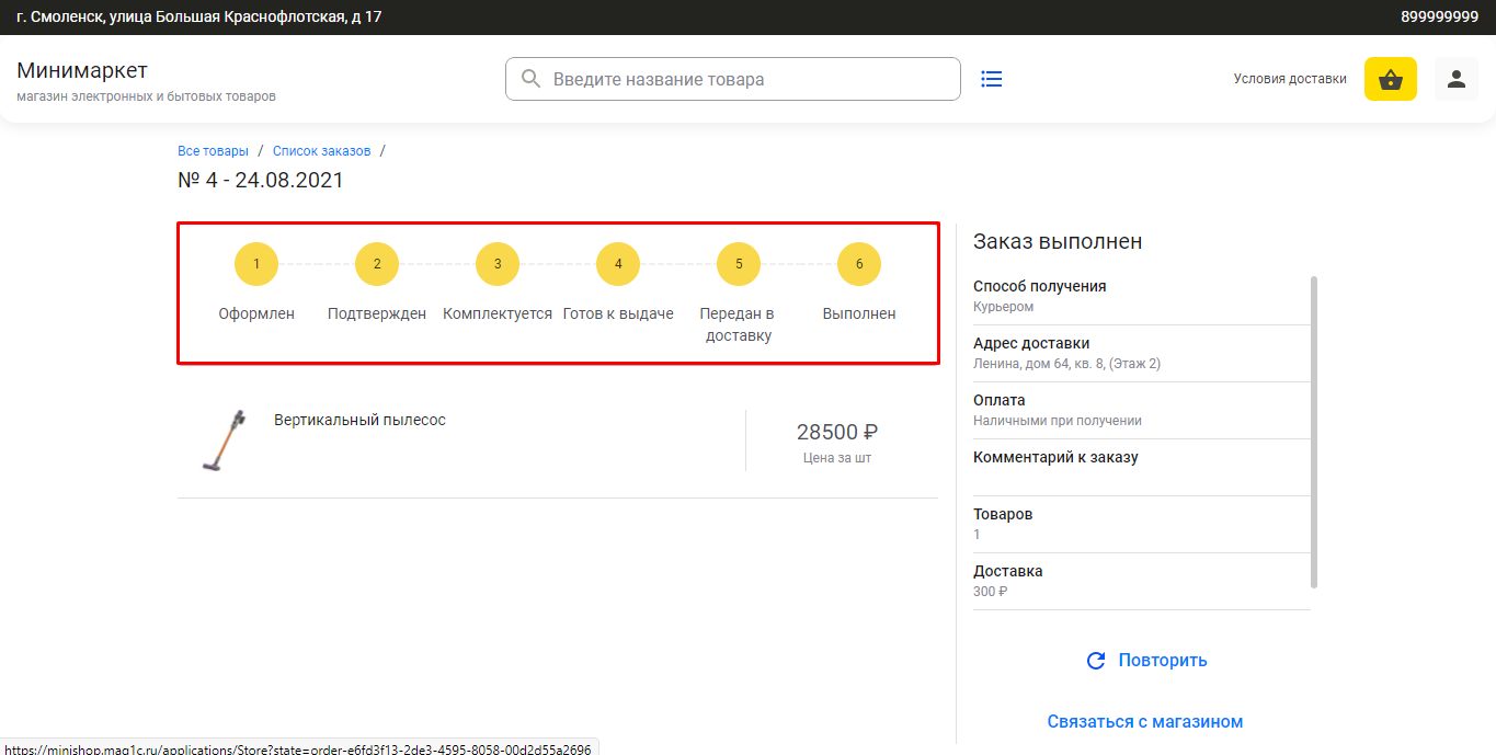 Индикаторы в заказе покажут, что оплата и отгрузка выполнены.