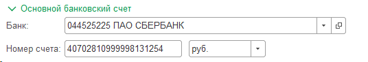 Разверните вкладку Основной банковский счет. Укажите: