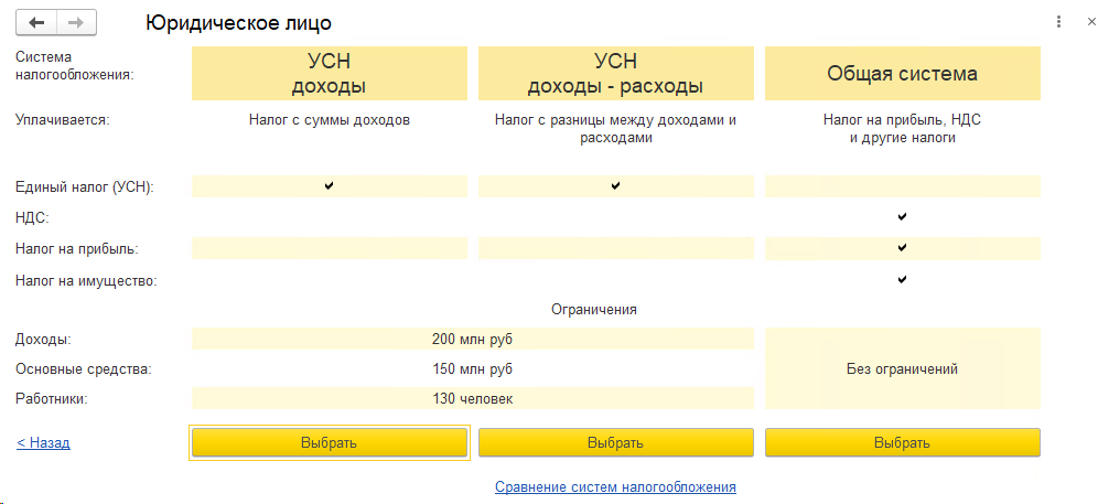 На следующем этапе укажите систему налогообложения, которую применяет организация.
