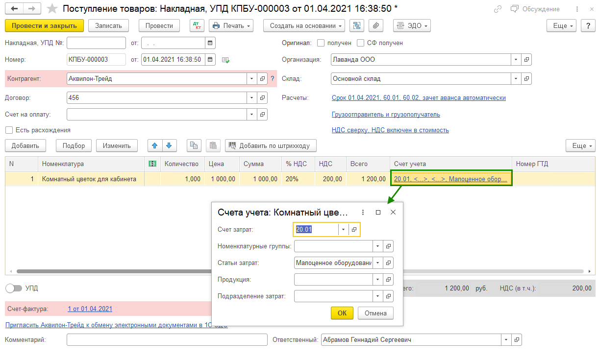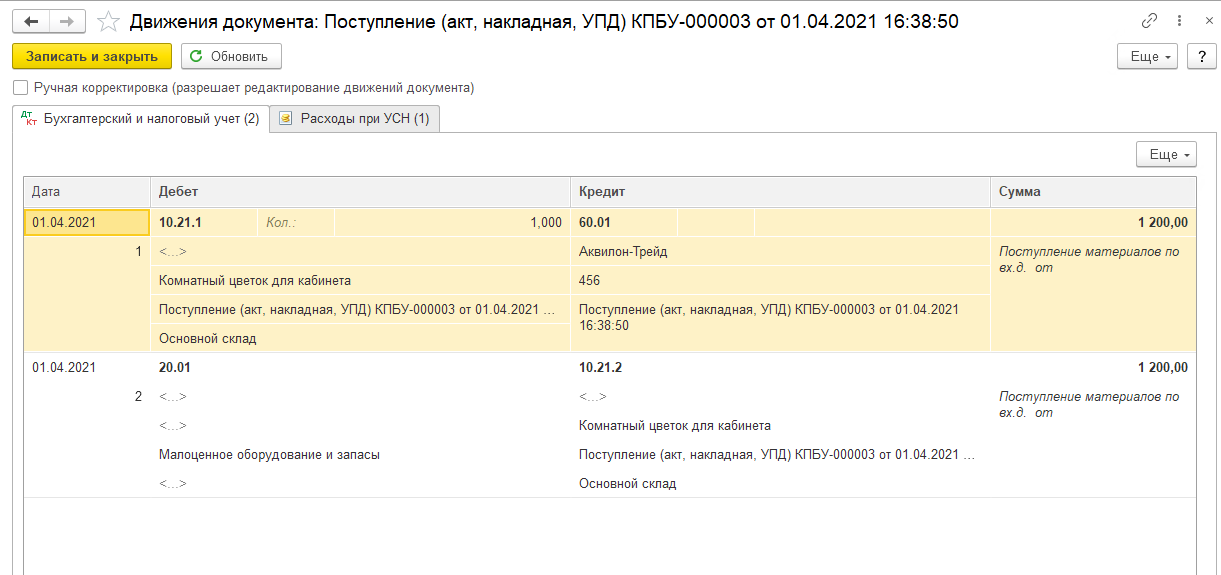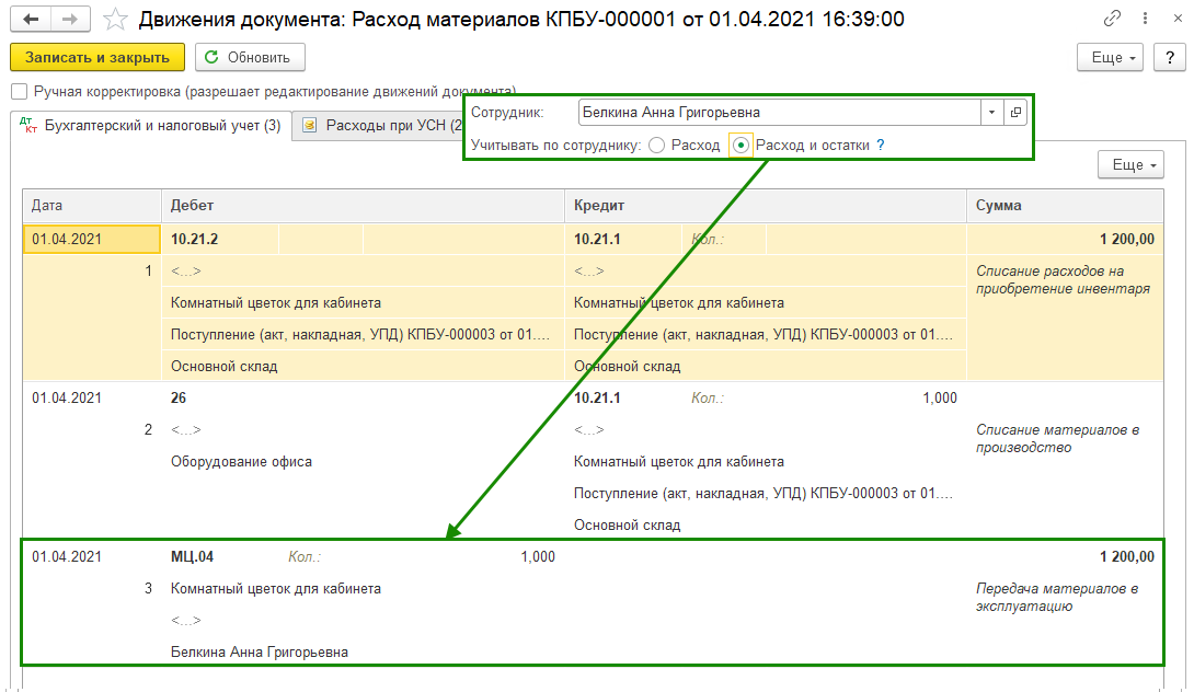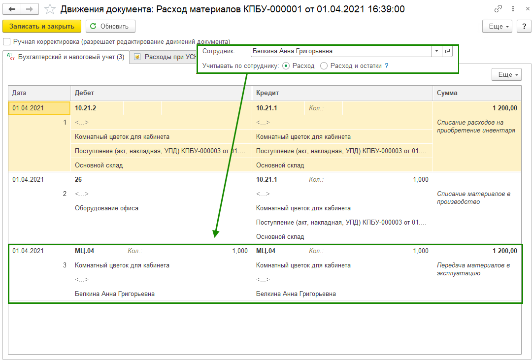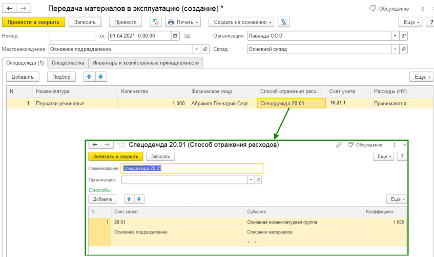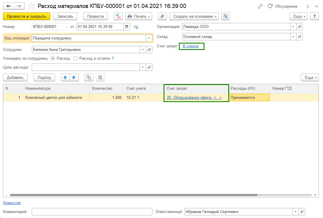 Ключевое условие — корректно указывать счет учета, как правило, это 10.21.1.