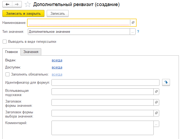 3. Задайте наименование, аналогичное полю в Национальном каталоге, выберите тип значения и отметьте обязательность заполнения. Приведем примеры дополнительных реквизитов.