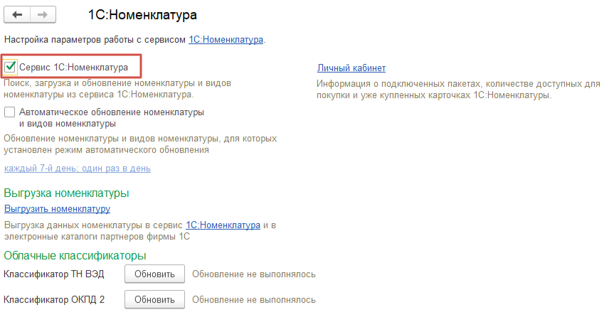 Перейдите в раздел НСИ и администрирование — 1С:Номенклатура и установите флажок рядом с пунктом 1С:Номенклатура.