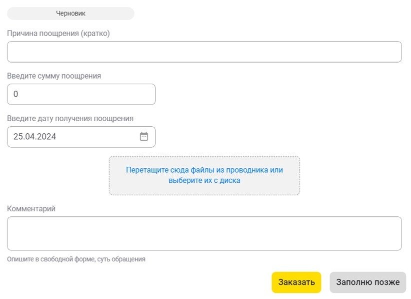 Заполнение черновика документа упрощается за счет автоматического подставления данных о должности, Ф. И. О. сотрудника и руководителя, а также информации об организации и подразделении. Остальные поля сотрудник заполняет вручную. После нажатия на кнопку Заказать документ передается в «1С:Зарплата и управление персоналом», где его обрабатывает исполнитель в разделе Мои задачи.