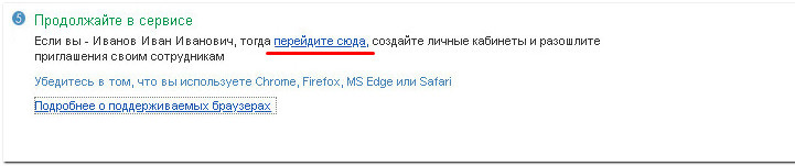 Когда запрос на подключение будет обработан, вы увидите ссылку для перехода в сервис. Если вы назначили ответственным сотрудником себя, перейдите по ссылке.