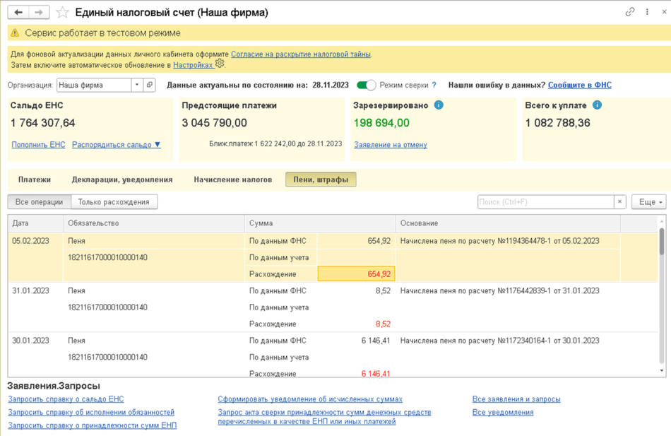 Когда ФНС начисляет пени и штрафы, бухгалтеру важно вовремя учесть эти данные: отследить изменения и вручную отразить в учете. 1С автоматизирует этот процесс.