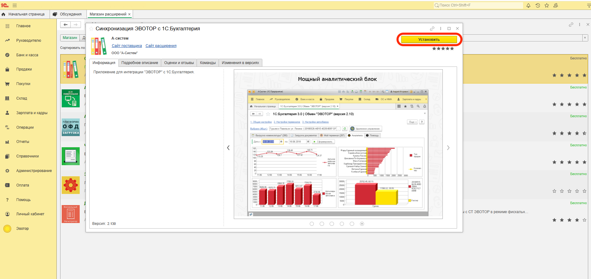 Магазин расширений работает по принципу магазина приложений на смартфоне. В нем можно найти и установить нужные расширения для работы в 1С. На текущий момент «1С:Магазин расширений» доступен пользователям сервиса 1С Фреш.